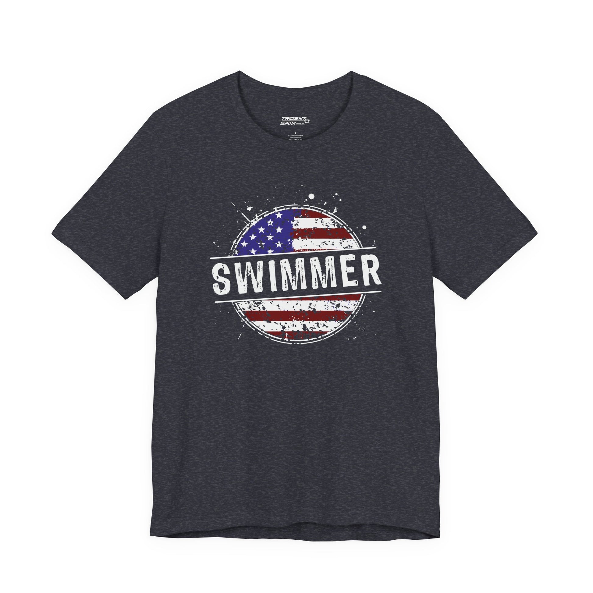 The water is your battlefield. Designed for those who push past limits, conquer every lap, and carry the American flag in spirit and in heart. With it's patriotic design, this shirt embodies grit, determination, and the relentless drive of true American athletes.