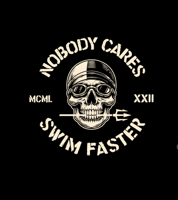 Our popular Nobody Cares Swim Faster design emblazed with a skull, geared up to hit the water.