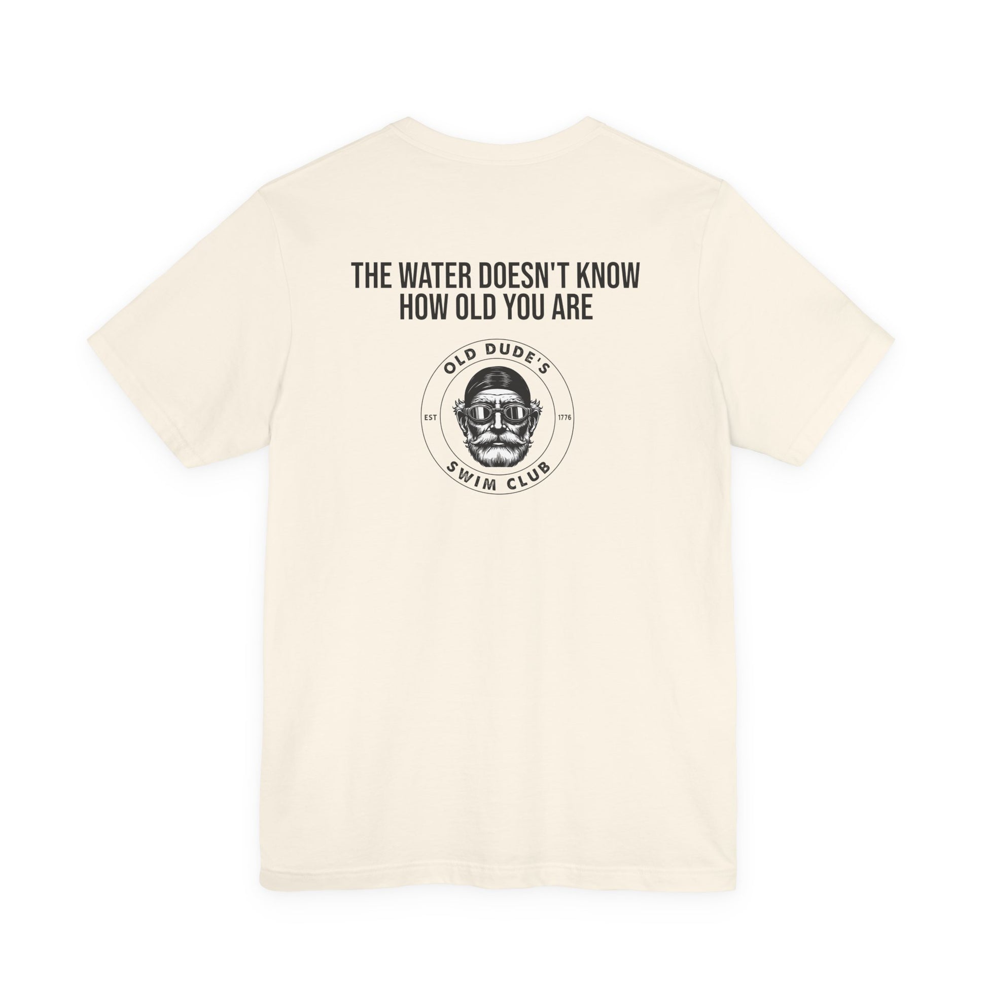 Old Dude's Swim Club-back design. The Water Doesn't Know.
